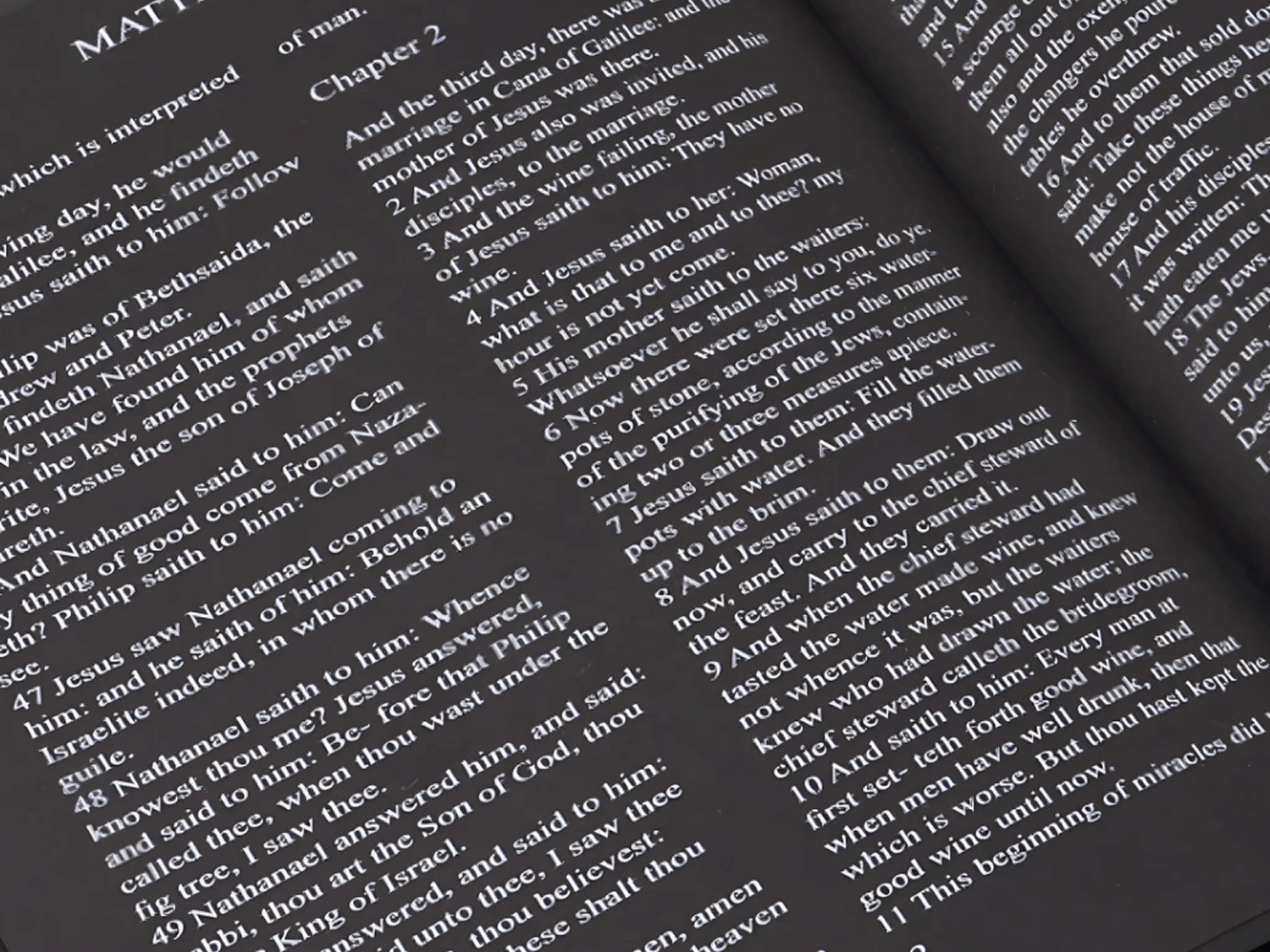The KJV New Testament Bible printed with white ink on the finest Italian black paper.